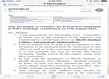 Examiner for dm cardiology exam @ mgm institute aurangabad 2019
