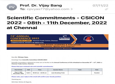 Invitation as faculty for cardiology society of india csi-conference at chennai december 2022